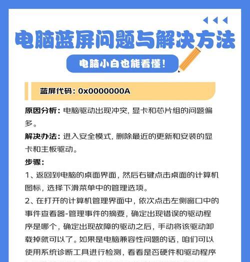 三:运行系统文件检查工具 Windows操作系统提供了一个系统文件检查工具,可以扫描并修复一些系统文件错误。打开命令提示符,并输入“sfc/scannow”命令,然后按回车键。系统会自动扫描并修复一些可能导致蓝屏错误的系统文件问题。 四:检查硬件故障 如果以上方法都没有解决问题,那么很可能是硬件故障引起的蓝屏错误。您可以尝试拆卸并重新安装内存条、硬盘和显卡等重要组件,确保它们正确连接。如果问题仍然存在,建议您联系专业的电脑维修人员进行进一步的故障诊断和修复。 五:清理内存 过热或脏污的内存也可能导致蓝屏错误。您可以使用压缩气罐等工具清理内存槽和内存条表面的灰尘。此外,确保电脑散热良好,避免长时间运行导致过热。