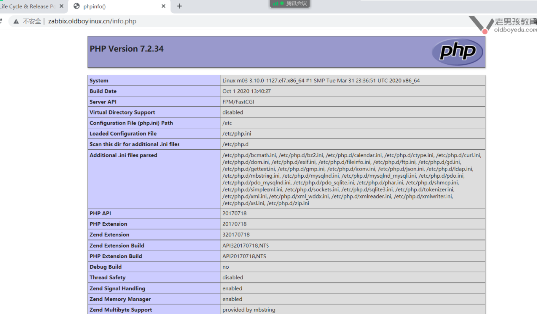 nginx环境 #m03 zabbix-server 10.0.0.72/172.16.1.72         ###配置nginx源         [root@m03 ~]# cat /etc/yum.repos.d/nginx.repo         [nginx-stable]        name=nginx stable repo        baseurl=http://nginx.org/packages/centos/$releasever/$basearch/        gpgcheck=1        enabled=0        gpgkey=https://nginx.org/keys/nginx_signing.key        module_hotfixes=true        [root@m03 ~]# yum install nginx --enablerepo=nginx-stable          php #nginx 1.20.1 php7.2         curl -o /etc/yum.repos.d/CentOS-Base.repo http://mirrors.aliyun.com/repo/Centos-7.repo        yum install epel-release.noarch -y #webtatic 要求         curl -o /etc/yum.repos.d/epel.repo http://mirrors.aliyun.com/repo/epel-7.repo        rpm -Uvh https://mirror.webtatic.com/yum/el7/webtatic-release.rpm #webtatic源         yum install php72w-cli php72w-fpm php72w-gd php72w-mbstring php72w-bcmath php72w-xml php72w-ldap php72w-mysqlnd -y        [root@m03 ~]# rpm -qa |egrep nginx|php72w        php72w-fpm-7.2.34-1.w7.x86_64        php72w-mbstring-7.2.34-1.w7.x86_64        nginx-1.20.1-2.el7.x86_64        php72w-common-7.2.34-1.w7.x86_64        php72w-pdo-7.2.34-1.w7.x86_64        php72w-mysqlnd-7.2.34-1.w7.x86_64        php72w-cli-7.2.34-1.w7.x86_64        php72w-ldap-7.2.34-1.w7.x86_64        php72w-xml-7.2.34-1.w7.x86_64        nginx-filesystem-1.20.1-2.el7.noarch        php72w-gd-7.2.34-1.w7.x86_64        php72w-bcmath-7.2.34-1.w7.x86_64          nginx+php #01         [root@m03 ~]# systemctl enable nginx php-fpm.service         Created symlink from /etc/systemd/system/multi-user.target.wants/nginx.service to /usr/lib/systemd/system/nginx.service.        Created symlink from /etc/systemd/system/multi-user.target.wants/php-fpm.service to /usr/lib/systemd/system/php-fpm.service.        [root@m03 ~]# systemctl start nginx php-fpm.service         [root@m03 ~]#         #02 nginx配置         [root@m03-zabbix-server ~]# cat /etc/nginx/conf.d/zbx.oldboylinux.cn.conf        server {        listen 80;        server_name zbx.oldboylinux.cn;        root /app/code/zbx;        location / {        index index.php;        }        location ~ \.php$ {        fastcgi_pass 127.0.0.1:9000;        fastcgi_index index.php;        fastcgi_param SCRIPT_FILENAME /app/code/zbx$fastcgi_script_name;        include fastcgi_params;        }        }        [root@m03 ~]# nginx -t         nginx: the configuration file /etc/nginx/nginx.conf syntax is ok        nginx: configuration file /etc/nginx/nginx.conf test is successful        [root@m03 ~]# systemctl reload nginx         #03 php 配置         #修改php用户        #准备 php会话保持目录         [root@m03 ~]# sed -ri /^(user|group)/s#apache#nginx#g /etc/php-fpm.d/www.conf         [root@m03 ~]# egrep ^(user|group) /etc/php-fpm.d/www.conf        user = nginx        group = nginx        [root@m03 ~]# grep var/lib/php/session /etc/php-fpm.d/www.conf        php_value[session.save_path] = /var/lib/php/session        [root@m03 ~]# mkdir -p /var/lib/php/session         [root@m03 ~]# chown nginx.nginx /var/lib/php/session        [root@m03 ~]# php-fpm -t         [15-Jul-2021 15:33:44] NOTICE: configuration file /etc/php-fpm.conf test is successful        [root@m03 ~]# systemctl reload php-fpm.service         #04 php+nginx测试        [root@m03 ~]# mkdir -p /code/zabbix         [root@m03 ~]# chown nginx.nginx /code/zabbix        [root@m03 ~]# vim /code/zabbix/info.php        [root@m03 ~]# cat /code/zabbix/info.php        <?php        phpinfo();        ?>        [root@m03 ~]#          php-nginx测试完成