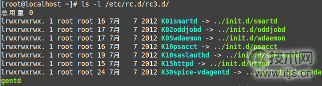 Tips:/etc/rc[0~6].d其实是设置/etc/rc.d/rc[0~6].d的软连接,主要是启动为了保持和Unix的兼容性才做此策 这7个目录中,每个目录分别存放着对应运行级别加载时需要关闭或启动的服务方式服务 由详细信息可以知道,其实每个脚本文件都对应着/etc/init.d/目录下具体的设置服务 K开头的脚本文件代表运行级别加载时需要关闭的,S开头的启动代表需要执行