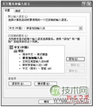 第2步,弹出“文字服务和输入语言”窗口。在“已安装服务”中列出的是已经安装的输入法,如图3所示。