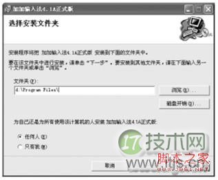 第7步,设置输入法的安装路径,保持默认设置,如图9所示,单击“下一步”按钮。也可单击“浏览”按钮更改输入法的安装路径。