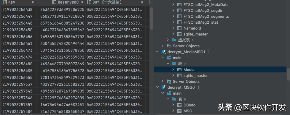 但是这里出现了一个问题,我在学习pymem的过程中通过翻阅文档发现有一个全局搜索函数pattern_scan_all,但是通过实际下载pymem模块时候却没有了这个函数,于是我这里只好自己把这个函数再重新写一遍。```def pattern_scan_all(handle, pattern, *, return_multiple=False): 复制from pymem.pattern import scan_pattern_pagenext_region = 0found =                            [] user_space_limit = 0x7FFFFFFF0000 if sys.maxsize > 2 ** 32 else 0x7fff0000while next_region < user_space_limit                            : next_region, page_found = scan_pattern_page                            ( handle                            , next_region                            , pattern                            , return_multiple=return_multiple                            ) if not return_multiple and page_found                            : return page_found if page_found                            : found += page_foundif not return_multiple                            : return Nonereturn found1.2.3.4.5.6.7.8.9.10.11.12.13.14.15.16.17.18.19.20.21.22.23.                                                                                                                                                                复制再根据分析整体数据结构的偏移量就可获得很多信息了# 0x03 解密上面已经获取了很多信息,接下来我准备开始解密,但是有一个问题,如果我们通过下载Visual Studio的c++库编写解密脚本而且还要自行编译,本身我也不会c++,而且Visual Studio太过臃肿,我这里在网上搜了好半天,看看有没有什么python解密sqlite的库结果发现[pysqlcipher3](https://pypi.org/project/pysqlcipher3/)可以用来解密,但是在安装的过程中,发现安装失败,结果去网上论坛搜索还是需要静态编译链接,我尝试了几次发现还是要下载Visual Studio,于是这个库我只好放弃,但是在解密mac的过程中可以使用上述的这个模块我们只需要在mac系统中安装相应工具就可以使用该模块了1.2.3.4.5.                                                                brew install sqlcipher 复制回到windows,我实在找不到结局方案,只好使用比较low的方法,通过subprocess去调用工具,工具还是蛮小的方法可行。1.                                                                                                                                        复制if not db_file                            : raise ValueError("db_File is not defined!"                            ) if not secret_key                            : raise ValueError("secret_key is not defined!"                            ) salt = open(db_file, rb).read(16                            ) dk = hashlib.pbkdf2_hmac(sha1, secret_key, salt, 64000, dklen=32                            ) exe_cmd = "%s %s" % (get_exe_file(), db_file                            ) p2 = Popen(exe_cmd, stdout=PIPE, stdin=PIPE, stderr=PIPE, shell=True                            ) cmd_sql = PRAGMA key = "x%s";PRAGMA cipher_page_size=4096; ATTACH DATABASE decrypt_%s AS plaintext KEY ; SELECT sqlcipher_export(plaintext); DETACH DATABASE plaintext; % (binascii.hexlify(dk).decode(),os.path.basename(db_file                            )) code, message = p2.communicate(bytes(cmd_sql, encoding=utf-8))1.2.3.4.5.6.7.8.9.10.11.12.                                                                                        这里我们写好了相关解密脚本结果mac数据库和win数据库采用的加密方式不同,于是我又去了解了一下。 传入密钥        通过Rand_bytes算法生成16个字节的salt,并存储在数据库第一页的头部(SQLite3的db文件,头部前16个字节固定为SQLite 3 format,所以可以利用文件头来存储一些数据)。 通过PKCS5_PBKDF2_HMAC_SHA1算法将密钥和salt一起加密并多次迭代,生成AES加密所用的key;此处是对key的加密,即使原始的密码泄露,也无法解密数据。 通过AES对称加密算法对每一页的文件内容(有效的内容,不包含文件头和reserved字段)进行加密。 加密时,文件执行过AES加密后,对文件内容,通过Hmac算法,获取文件校验码,填充在page尾部(SQLite3提供了reserved字段,自动在page尾部预留一段空间)。 解密时,先调用Hmac算法获取文件标识码,与page尾部的数据进行对比,如果数据一致,则证明文件没有被篡改过,不然证明文件已经被篡改,则抛出异常。 PS:以上为默认的算法,sqlCipher没有固定算法,用户可以自己设置。 经测试windows系统的wx数据库就是用上述加密方式,首先会通过读取文件头生成16个字节的salt,再使用PBKDF2_HMAC_SHA1算法设置迭代次数为64000次生成的密钥这样的话解密就很简单了 复制salt = open(db_file, rb).read(16                            ) dk = hashlib.pbkdf2_hmac(sha1, secret_key, salt, 64000, dklen=32                            ) exe_cmd = "%s %s" % (get_exe_file(), db_file                            ) p2 = Popen(exe_cmd, stdout=PIPE, stdin=PIPE, stderr=PIPE, shell=True                            ) cmd_sql = PRAGMA key = "x%s";PRAGMA cipher_page_size=4096; ATTACH DATABASE decrypt_%s AS plaintext KEY ; SELECT sqlcipher_export(plaintext); DETACH DATABASE plaintext; % (binascii.hexlify(dk).decode(),os.path.basename(db_file))1.2.3.4.5.                                                                                        这里也遇到了坑 key可以有两种表现方式,一种是单纯字符串口令,另一种就是原始密钥,我们从内存中获取的是原始密钥所以要输入的是PRAGMA key = "x密钥"我们回到mac密钥的获取,因为mac的权限管理做的很死,我们首先需要关闭SIP(系统完整性保护) 系统完整性保护(SIP)是 OS X El Capitan 及更高版本所采用的一项安全技术,旨在帮助防止潜在恶意软件修改 Mac 上受保护的文件和文件夹,但这也造成了安装某些特