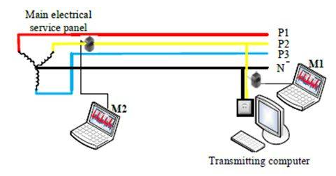 图1 水蝮蛇攻击装备 防范对策: 严格执行保密规定,加强移动存储介质和涉密计算机管理,并对涉密信息进行加密存储。同时在涉密计算机中安装保密管理系统和安防软件,及时升级、定期查毒。 (2)  利用电力线跨网窃密将带有“后门”的核心元器件(如:芯片)预先植入电子设备中,当设备运行后,植入的“间谍”会主动捕获来自电网上的“指令”,并将信息以特殊的电信号形式回传到电网上。需要注意的是,这种方法不仅可以获取用户的输入信息,还可以获取用户存储在计算机上的其他数据。此外,由于电源信号的参数可由“间谍”控制,所以,这种方式大大增加了攻击者的探测距离。以色列内盖夫本古里安大学的研究人员一直致力于通过旁路攻击从计算机窃取数据的研究。2018年其公开的免费源码下载研究成果-PowerHammer,通过电源线传播的电流波动隐蔽地窃取高度敏感的数据。电力线本来是为电力设备进行供电所必须的一种线路,而电力线上产生的电流也会随着负载的功耗进行波动,正是由于这种特性,电力线的电流波动成为攻击者利用的目标。通过这种看似“正常”微弱变化从计算机中获取敏感信息的操作完全颠覆了人们对电力线的认知,也让人们开始重视电力线的安全防护工作。