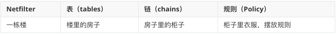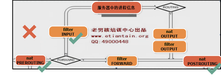 四表说明   filter表说明   用于实现防火墙功能,屏蔽或准许端口 ip。