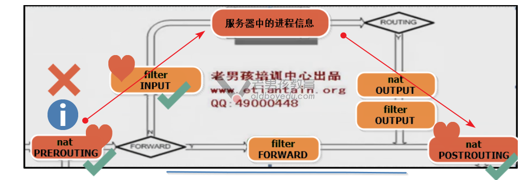 nat表说明   用于实现nat功能,如共享上网(内网服务器上外网)、端口映射和ip映射。