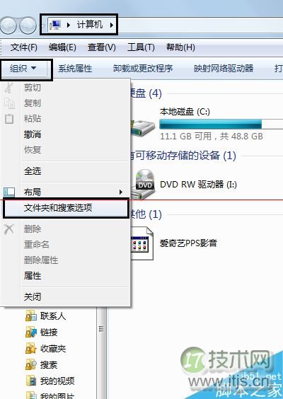 4、假如不想新建账户还有其他的IT技术网程序办法,打开计算机-组织-文件夹和搜索选项,打开