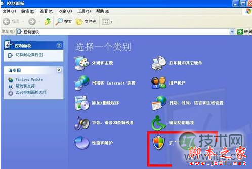 4、服务器托管法登方法打开控制面板后,错误我们在面板里找到“安全中心”选项然后打开它;