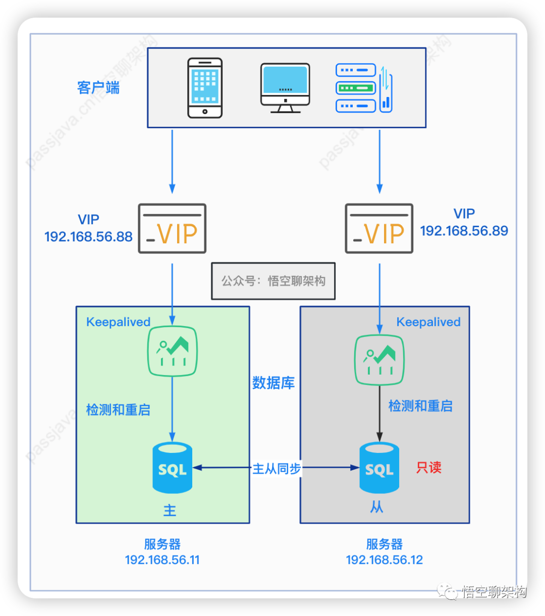 部分读写分离 三、从节点的高可用如何保证?3.1 保证从节点的可用性采用 keepalived 自动检测 MySQL 服务是否正常,如果不正常,自动重启 MySQL 容器。