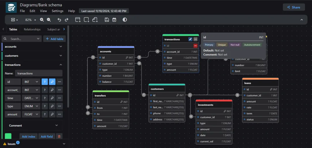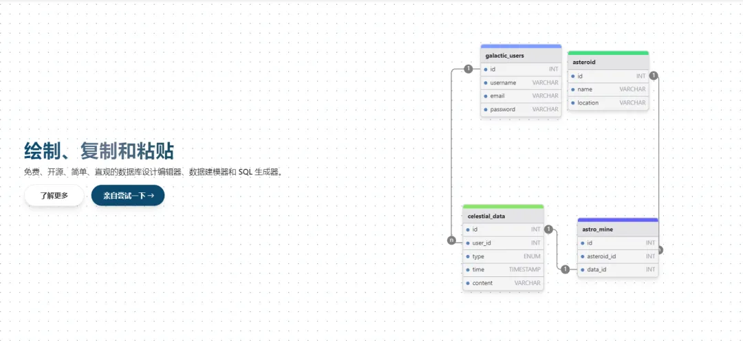 drawDBdrawDB是推荐一个开源、简单、数据直观、库设强大且用户友好的在线数据库设计工具和 SQL 生成器,支持多种数据库。只需点击几下即可构建图表,导出SQL脚本,可以自定义编辑器等,并且无需登录即可使用。云服务器 开源地址:https://github.com/drawdb-io/drawdb