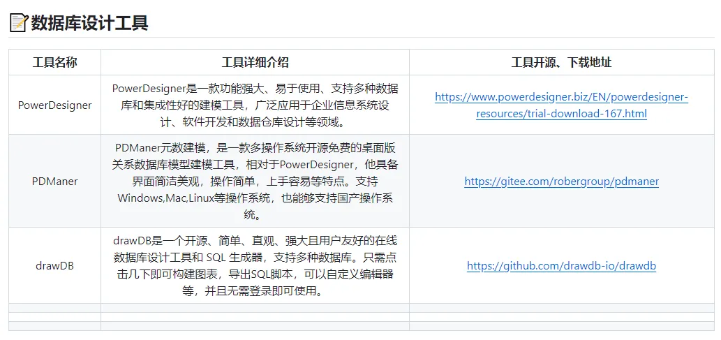 PDManerPDManer元数建模,是一款多操作系统开源免费的桌面版关系数据库模型建模工具,相对于PowerDesigner,他具备界面简洁美观,操作简单,上手容易等特点。支持Windows,Mac,Linux等操作系统,也能够支持国产操作系统。 开源地址:https://gitee.com/robergroup/pdmaner
