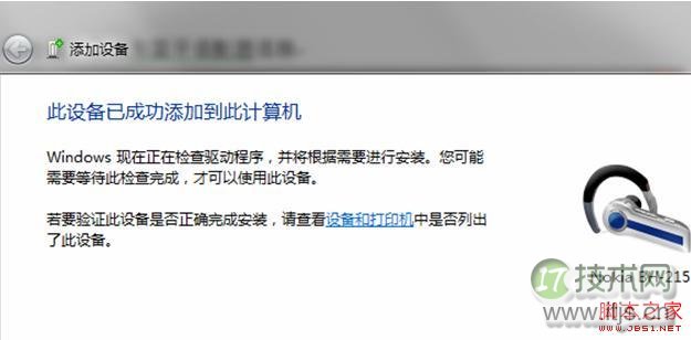 点击“开始”-“设备和打印机”,蓝牙连接乐就可以看到添加的耳机蓝牙耳机了,如图: