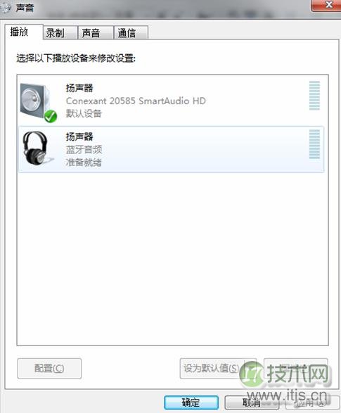 可以看到此时的默认播放设备是内置的扬声器,必须把蓝牙音频作为默认播放设备,才能使用蓝牙耳机听音乐 ,如图: