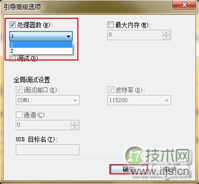 Windows 7 5、自置加招在引导高级选项窗口中,将“处理器数”勾选,然后选择对应的处理器数目,最后点击“确定”按钮即可,如下图所示: