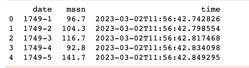 1、使用时序数据库 CnosDB 存储 MSSN 数据CnosDB(An Open Source Distributed Time Series Database with high performance, high compression ratio and high usability.)。 Official Website: http://www.cnosdb.comGithub Repo: https://github.com/cnosdb/cnosdb (注:本文假设你已具备 CnosDB 安装部署和基本使用能力,相关文档详见 https://docs.cnosdb.com/)。 在命令行中使用 Docker 启动 CnosDB 数据库服务,并进入容器使用 CnosDB CLI 工具直接访问 CnosDB: 复制(base) root@ecs-django-dev:~# docker run --restart=always --name cnosdb -d --env cpu=2 --env memory=4 -p 31007:31007 cnosdb/cnosdb:v2.0.2.1-beta(base) root@ecs-django-dev:~# docker exec -it cnosdb sh sh# cnosdb-cliCnosDB CLI v2.0.0Input arguments: Args { host: "0.0.0.0", port: 31007, user: "cnosdb", password: None, database: "public", target_partitions: None, data_path: None, file: [], rc: None, format: Table, quiet: false }1.2.3.4.5. 为了简化分析,我们只需存储数据集中观测时间和太阳黑子数。因此,我们将年(Col 0)和月(Col 1)拼接作为观测时间(date, 字符串类型),月均太阳黑子数(Col 3)可以不作处理直接存储。 我们可以在 CnosDB CLI 中使用 SQL 创建一张名为 sunspot 数据表,以用于存储 MSSN 数据集。 复制public ❯ CREATE TABLE sunspot ( date STRING , mssn DOUBLE , ); Query took 0.002 seconds . public ❯ SHOW TABLES ; +---------+| Table |+---------+| sunspot |+---------+Query took 0.001 seconds . public ❯ SELECT * FROM sunspot ; +------+------+------+| time | date | mssn |+------+------+------++------+------+------+Query took 0.002 seconds.1.2.3.4.5.6.7.8.9.10.11.12.13.14.15.16.17.18. 2、服务器租用使用 CnosDB Python Connector 连接和读写 CnosDB 数据库Github Repo: https://github.com/cnosdb/cnosdb-client-python。 复制# 安装 Python Connectorpip install -U cnos-connector1.2. 复制from cnosdb_connector import connectconn = connect(url="http://127.0.0.1:31001/", user="root", password="" ) cursor = conn.cursor()1.2.3. 如果不习惯使用 CnosDB CLI,我们也可以直接使用 Python Connector 创建数据表。 复制# 创建 tf_demo databaseconn.create_database("tf_demo" ) # 使用 tf_demo databaseconn.switch_database("tf_demo" ) print(conn.list_database ()) cursor.execute("CREATE TABLE sunspot (date STRING, mssn DOUBLE,);" ) print(conn.list_table())1.2.3.4.5.6.7. 输出如下,其中包括 CnosDB 默认的 Database。 复制[{Database: tf_demo}, {Database: usage_schema}, {Database: public }] [{Table: sunspot}]1.2. 将之前 pandas 的 dataframe 写入 CnosDB。 复制### df 为pandas的dataframe,"sunspot"为CnosDB中的表名,[date, mssn]为需要写入的列的名字### 如果写入的列不包含时间列,将会根据当前时间自动生成conn.write_dataframe(df, "sunspot", [date, mssn])1.2.3. 三、读取数据参考论文:程术, 石耀霖, 张怀. 基于神经网络预测太阳黑子变化 (2022)。 链接: http://journal.ucas.ac.cn/CN/10.7523/j.ucas.2021.0068  使用 CnosDB 读取数据 复制df = pd.read_sql("select * from sunspot;", conn ) print(df.head())1.2.