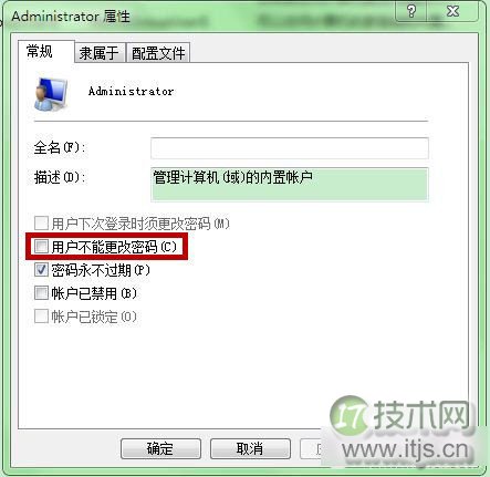 第四步、b2b供应网弹出的“Administrator属性”窗口中,我们将“用户不能更改密码”选项前面的勾去掉,再点击“确定”即可。