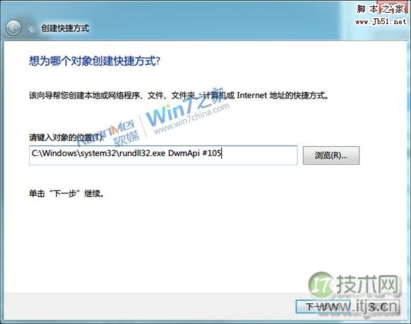 实现方法步骤: 1.创建快捷方式,右键点击桌面,锁定选择新建—快捷方式。到任 2.在“请键入对象的将技巧位置”文本框中输入C:Windowssystem32rundll32.exe DwmApi #105,点击下一步。窗口