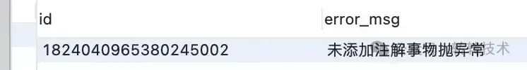 虽然抛出异常,声明式事但数据库仍修改成功了。码详 1.2 添加注解事务,声明式事异常回滚代码未执行前数据库信息: 图片 复制@Component public class TransactionalTest { @Resource BasicPriceUploadRecordMapper basicPriceUploadRecordMapper ; /** * 添加声明式注解,码详出现异常情况 */ @Transactional(transactionManager = "valuationTransactionManager",声明式事 rollbackFor = Exception.class) public void addTransactionToException() { BasicPriceUploadRecord base = new BasicPriceUploadRecord(); base.setErrorMsg("添加注解事务抛异常"); base.setId(1824040965380245002L); basicPriceUploadRecordMapper.updateByPrimaryKeySelective(base); throw new RuntimeException(); } }1.2.3.4.5.6.7.8.9.10.11.12.13.14.15.16.17. 代码执行后数据库信息: 图片