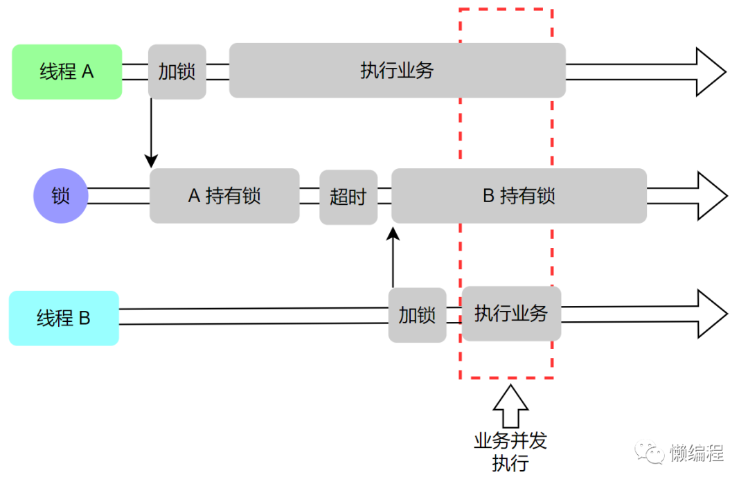 线程 A、B 同时执行导致业务错误是我们不希望出现的,对于这种情况,有两种解决方案: 1. 增大锁的过期时间,让业务逻辑有充足的执行时间; 2. 添加守护线程,当锁过期时,添加过期时间。 建议使用第一种方案,简单直接,此外,可以添加单一线程,对 Redis 的 key 做监控,对于时长特别长的 key,做监控报警。 轮询等待的效率问题依旧是线程 A、B,当线程 A 获得锁时,线程 B 也想获得锁,此时就需要等待,直到线程 A 释放锁或者锁过期自己释放了,看 redis-py 的源码,其等待的逻辑就是一个死循环,相关代码如下: 复制def acquire(self, blocking=None, blocking_timeout=None, token=None): # ...省略部分代码 # 死循环等待获得锁 while True: if self.do_acquire(token): self.local.token = token return True if not blocking: return False next_try_at = mod_time.time() + sleep if stop_trying_at is not None and next_try_at > stop_trying_at: return False # 阻塞睡眠一段时间 mod_time.sleep(sleep)1.2.3.4.5.6.7.8.9.10.11.12.13.14.15. 简单而言,这种方式就是在客户端轮询,未获得锁时,就等待一段时间再尝试去获得锁,直到成功获得锁或等待超时,这种方式实现简单,但当并发量比较大时,轮询的方式会耗费比较多资源,影响服务器性能。 更好的一种方式是使用 Redis 发布订阅功能,当线程 B 获取锁失败时,订阅锁释放的消息,当线程 A 执行完业务释放锁时,会发送锁释放信息,线程 B 获得信息后,再去获取锁,这样就不需要一直轮询了,而是直接休眠等待到锁释放消息则可。 Redis 集群主从切换比较复杂的项目会使用多个 Redis 服务构建集群,Redis 集群采用主从方式部署,简单而言,通过算法选择出 Redis 集群中的主节点,所有写操作都会落到主节点上,主节点会将指令记录在 buffer 中,再通过异步的方式将 buffer 中的指令同步到其他从节点,从节点执行相同的指令,便会获得与主节点相同的数据结构。 当我们基于 Redis 集群来构建分布式锁时,可能会出现主从切换导致锁丢失的问题。 依旧以例子来说明,客户端 A 通过 Redis 集群成功加锁,这个操作首先会发生在主节点,但由于某些问题,当前 Redis 集群的主节点 down 了,此时根据相应的算法,Redis 集群会从从节点中选出新的主节点,这个过程对客户端 A 而言是透明的,但如果在主从切换时,客户端 A 在旧主节点加锁的指令还未同步它就 down 了,那么新的主节点就不会有客户端 A 加速的信息,此时,如果有新的客户端 B 要加锁,便可以轻松加上。 Redis 集群脑裂脑裂这次确实挺抽象的,简单而言,Redis 集群中因为网络问题,某些从节点无法感知到主节点了,此时这些从节点会认为主节点 down 了,便会选出新的主节点,而客户端却可以连接上两个主节点,从而会出现两个客户端拥有同一把锁的情况。 结尾复杂分布式系统中锁的问题一直是个设计难题,学无止境呀。 |